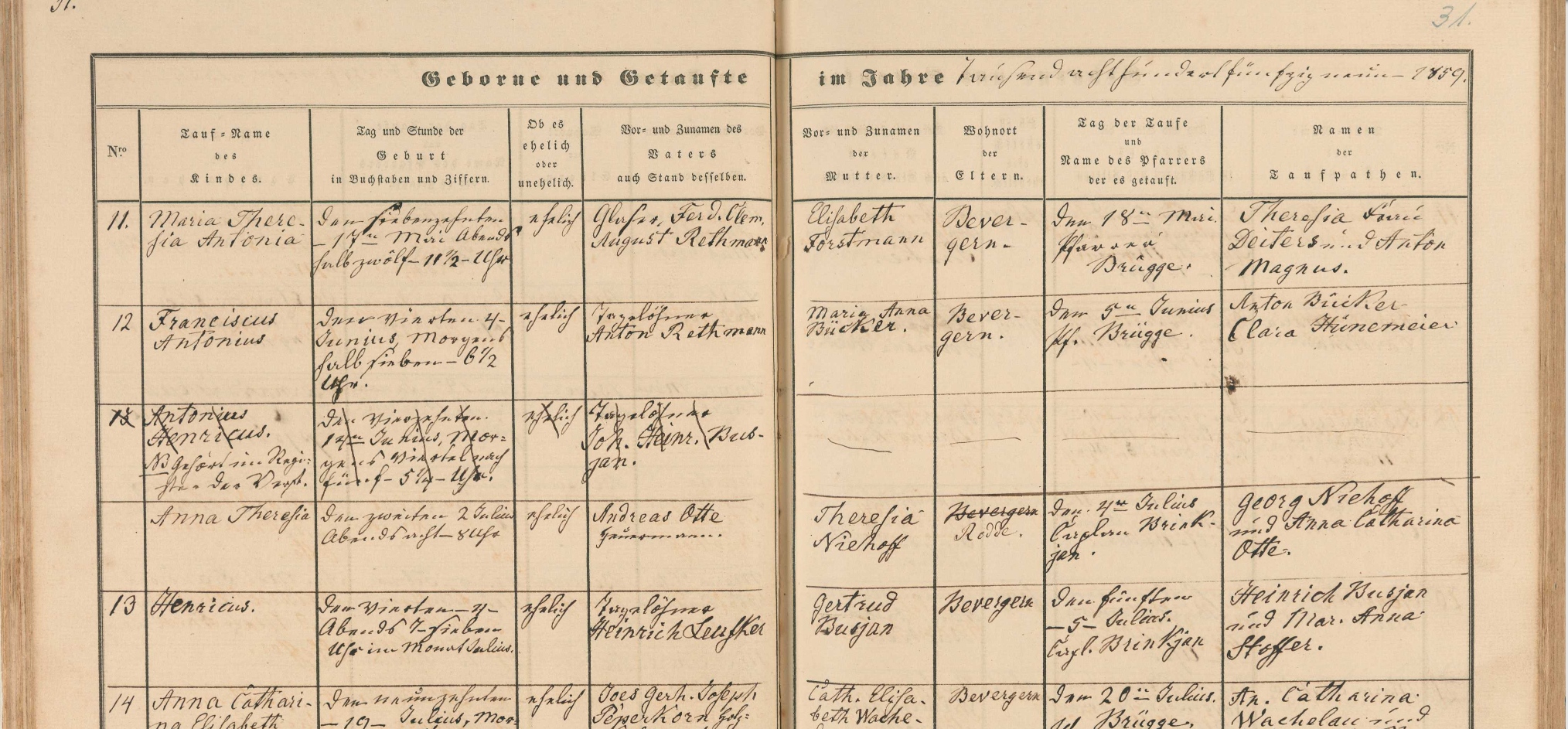 Religion: rk Taufpaten: Heinrich Busjan und Mar. Anna Stoffer Ereignis: Taufe: 05.07.1859: durch Kaplan Brinkjan, Bevergern [2] |