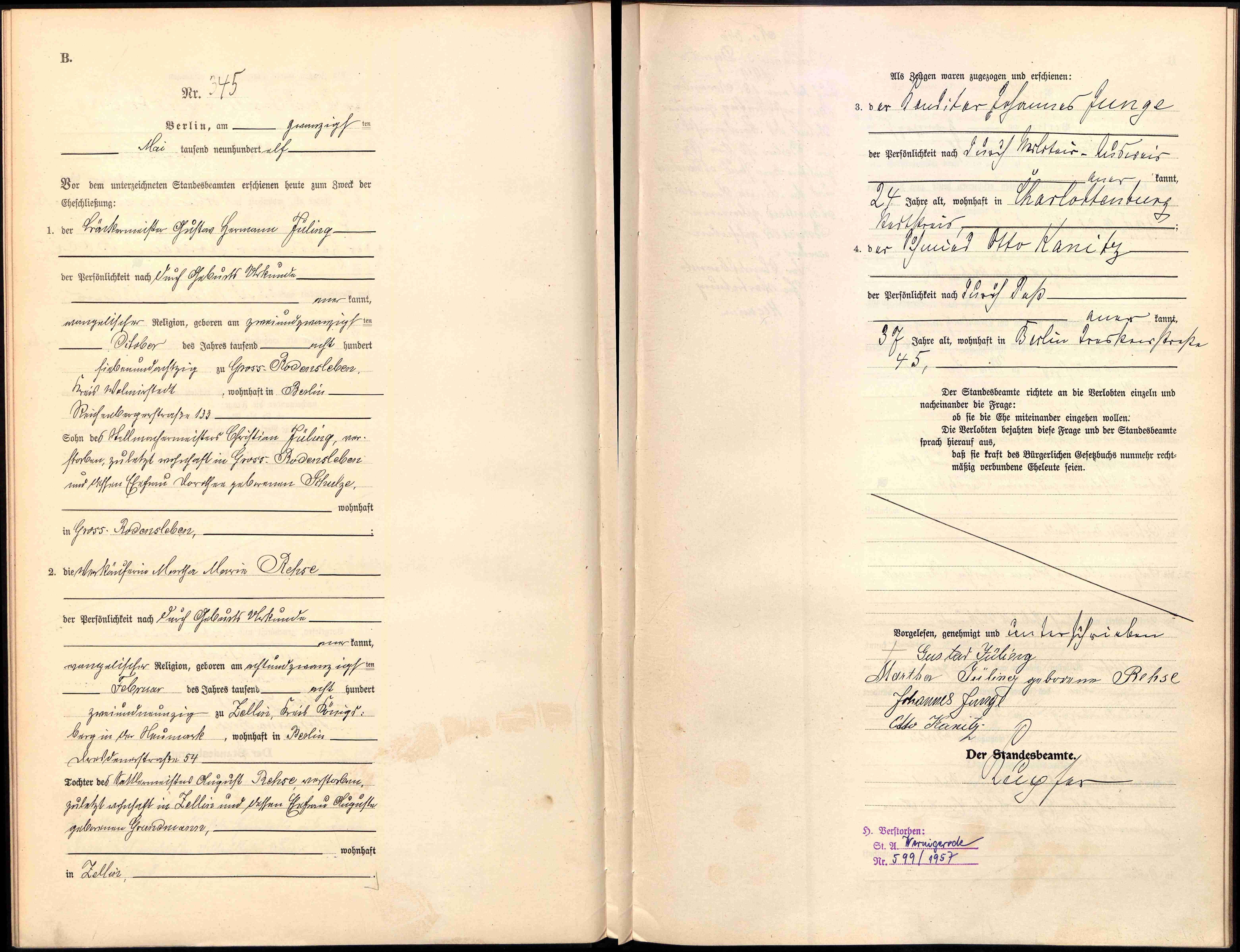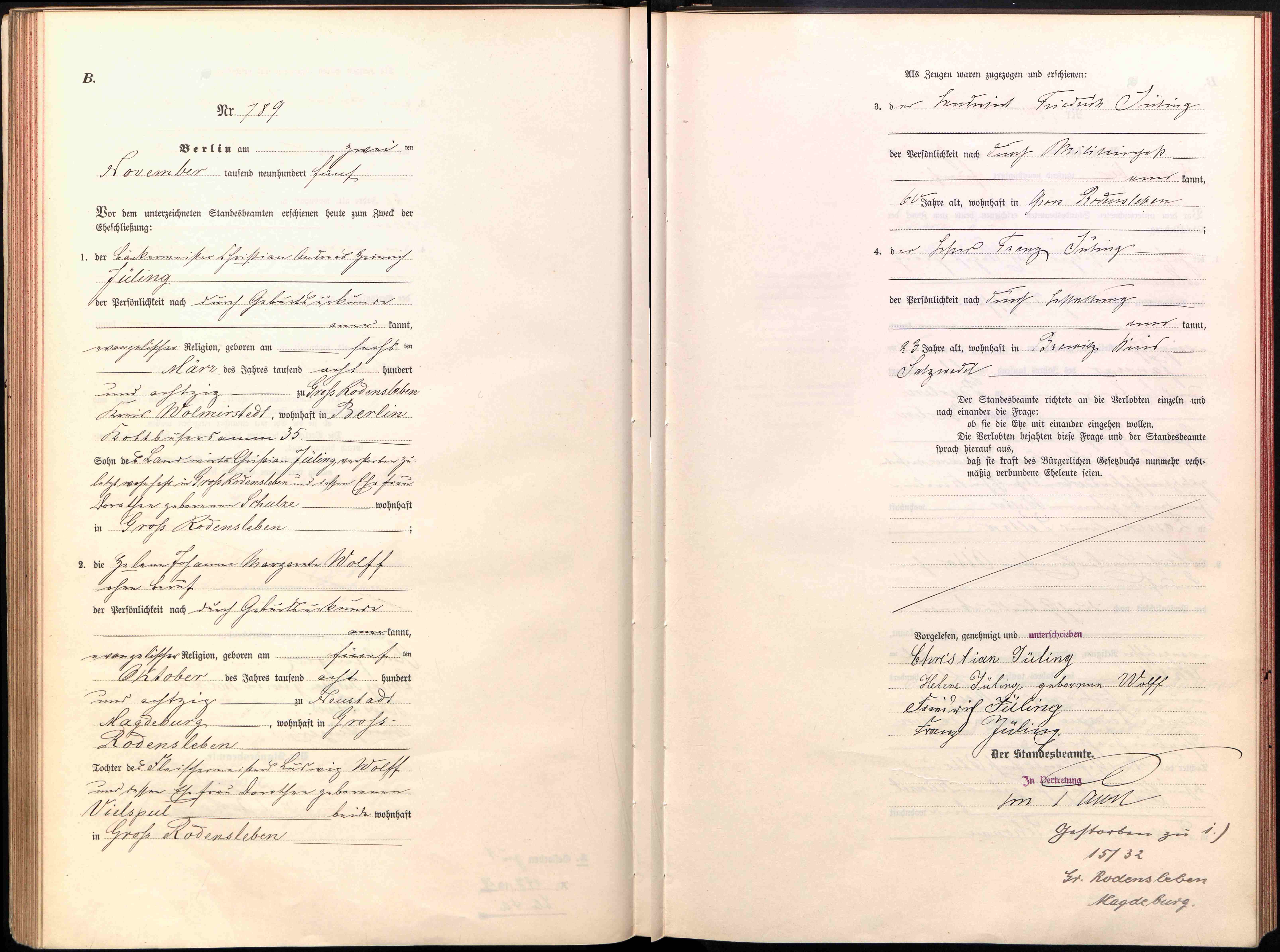 Beruf: Kossath und Stellmacher [1] -1901: Landwirt, Groß Rodensleben [2] Stellmachermeister, Groß Rodensleben [3]