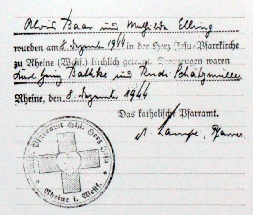 ![]() * 13.03.1921 in Bochum + 27.09.2008 in Rheine oo 06.12.1944 in Rheine | ![]() ![]() | |||||||||||||||