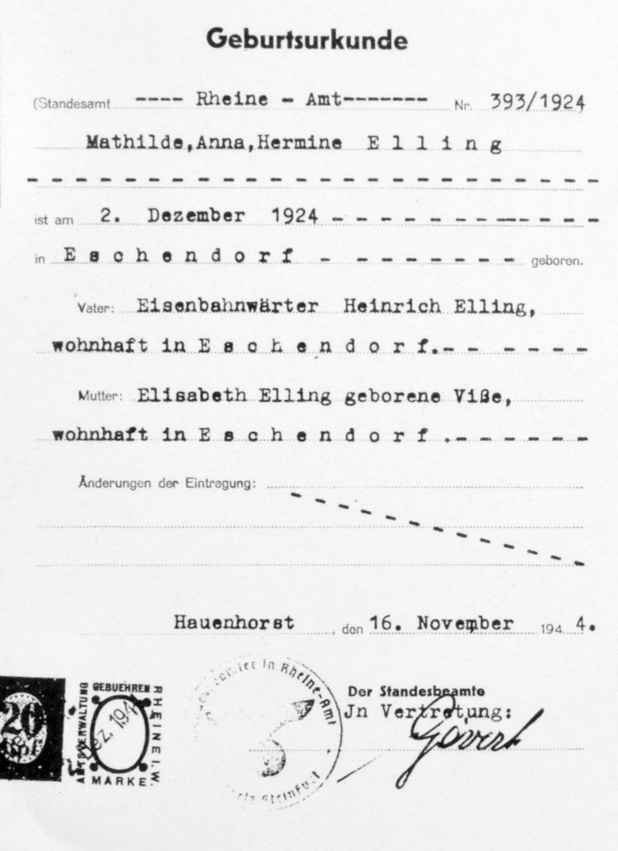 Peetvaders: Hermann Elling Anna Visse Opmerkingen: 4.12.1924: getauft in St. Antonius, Rheine |