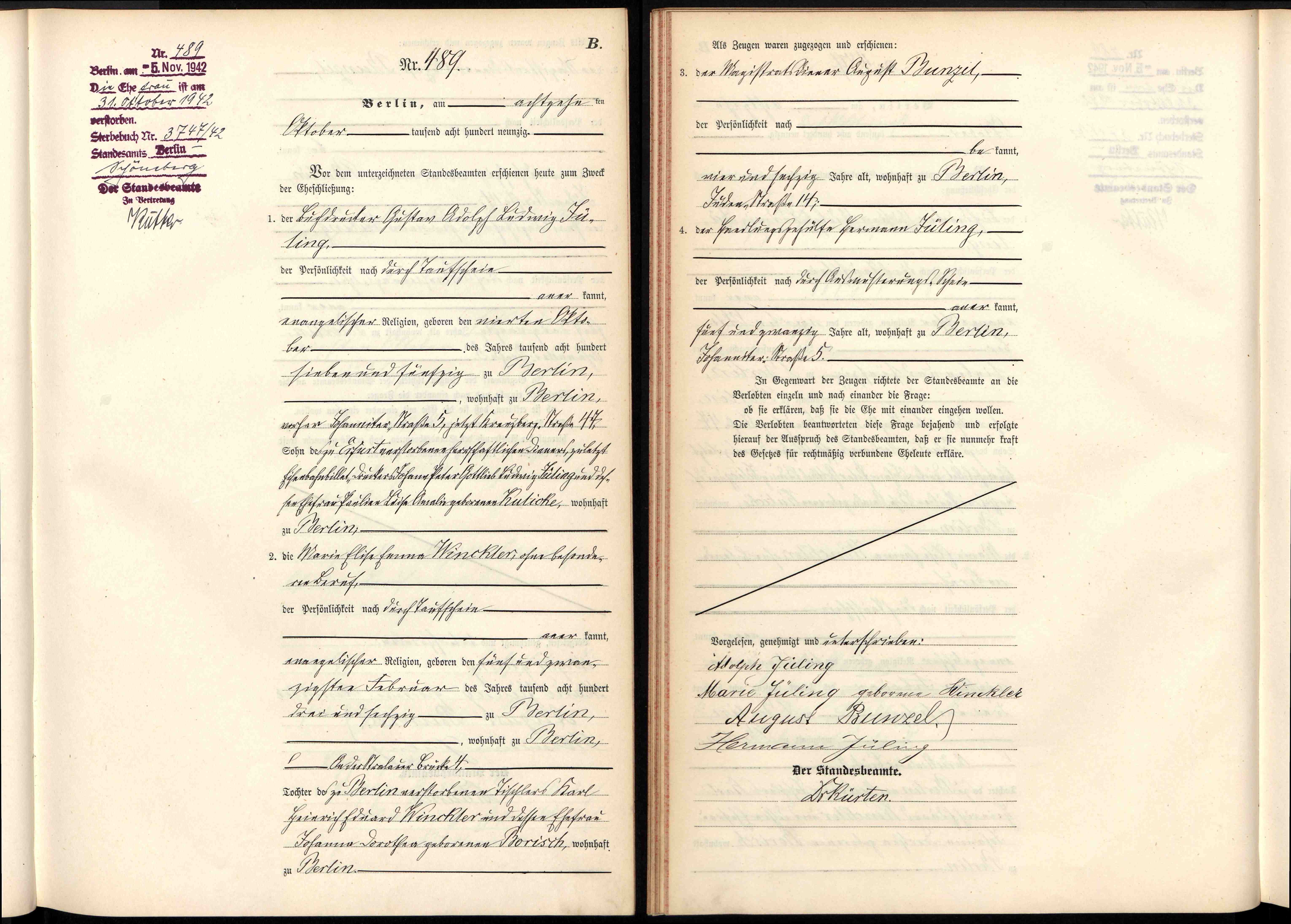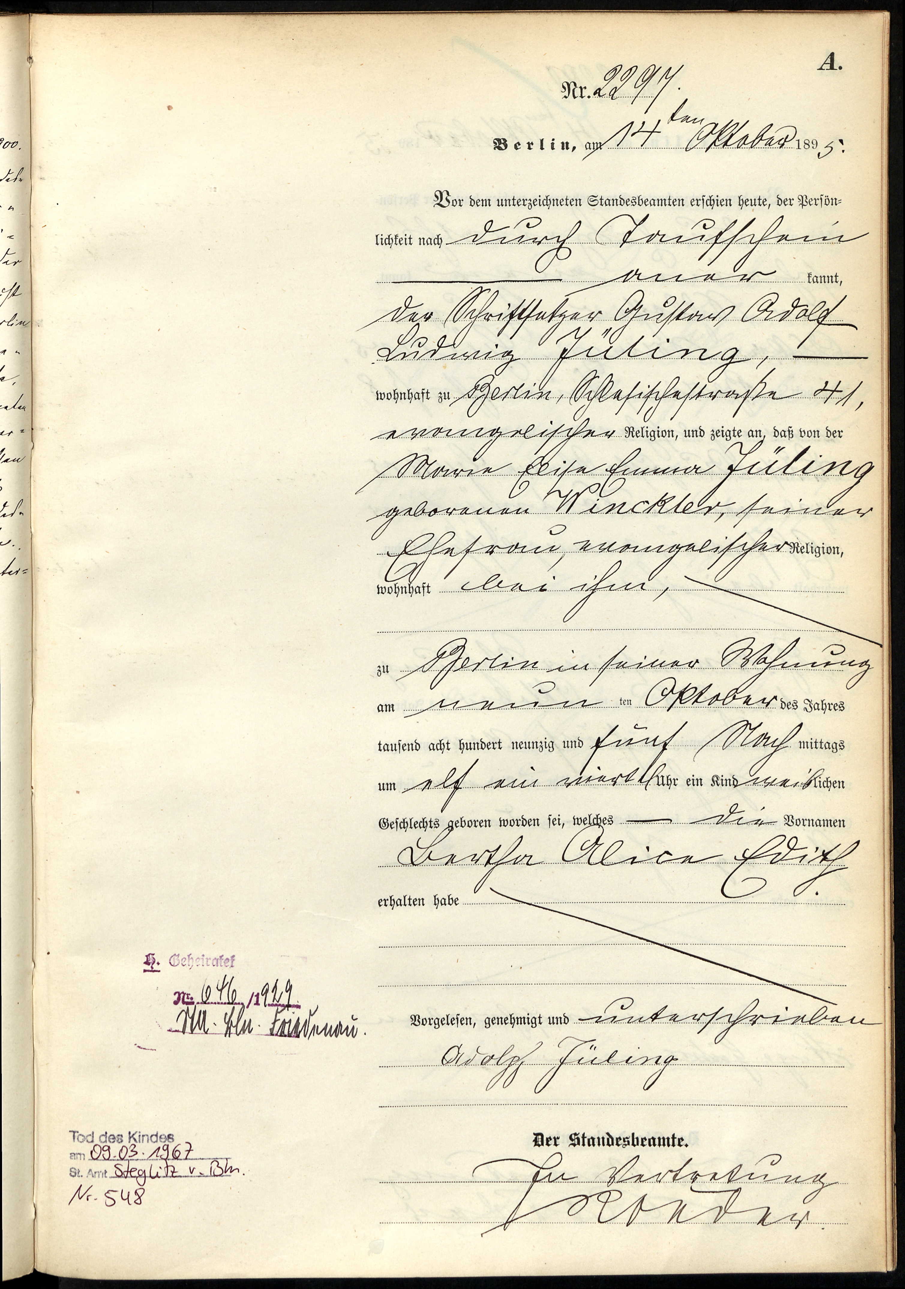 * 25.02.1863 in Berlin + 31.10.1942 in Berlin-Schöneberg oo 18.10.1890 in Berlin [2] | |||||||||