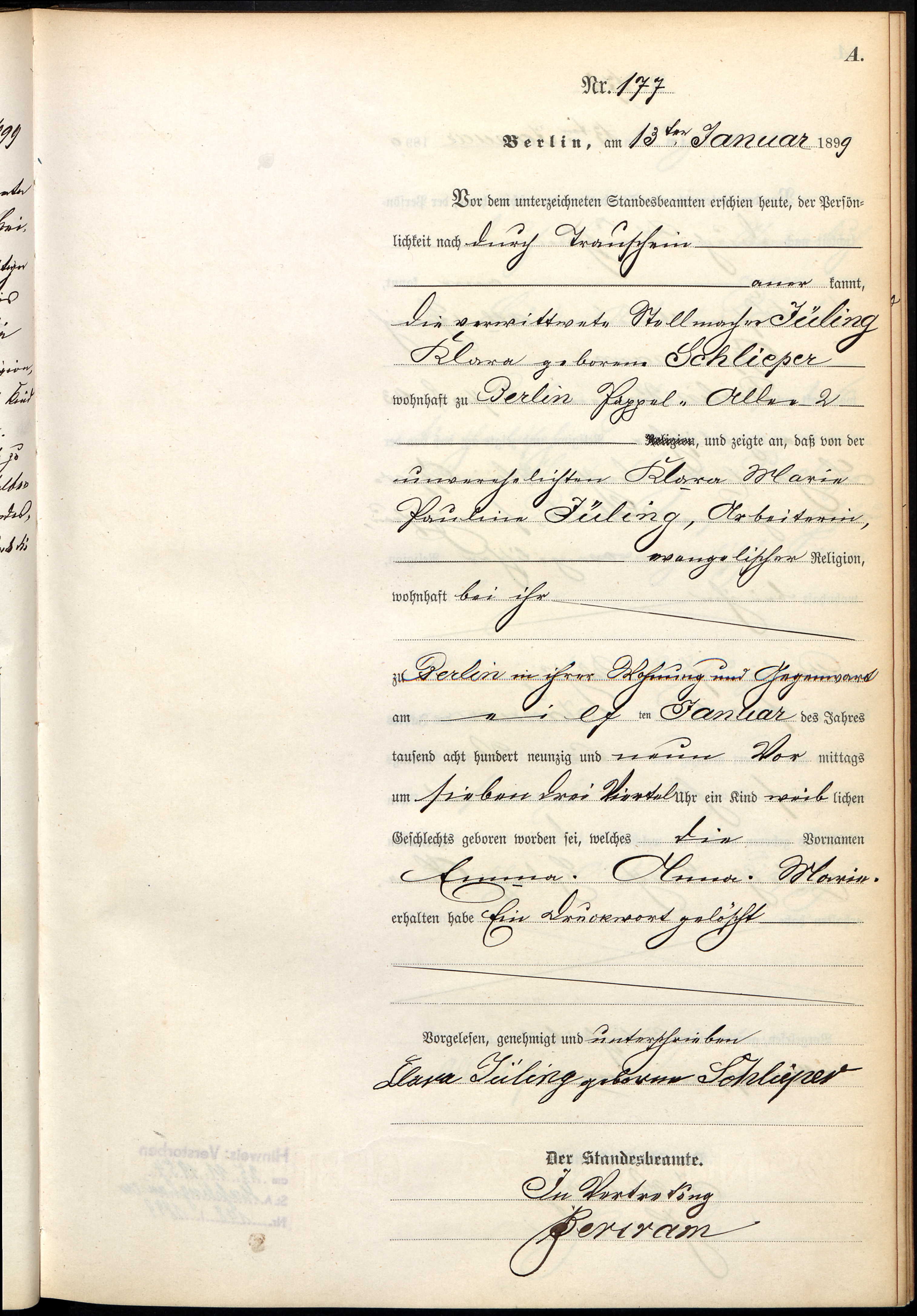 Religion: ev Beruf: 1899: Arbeiterin, Berlin [2]