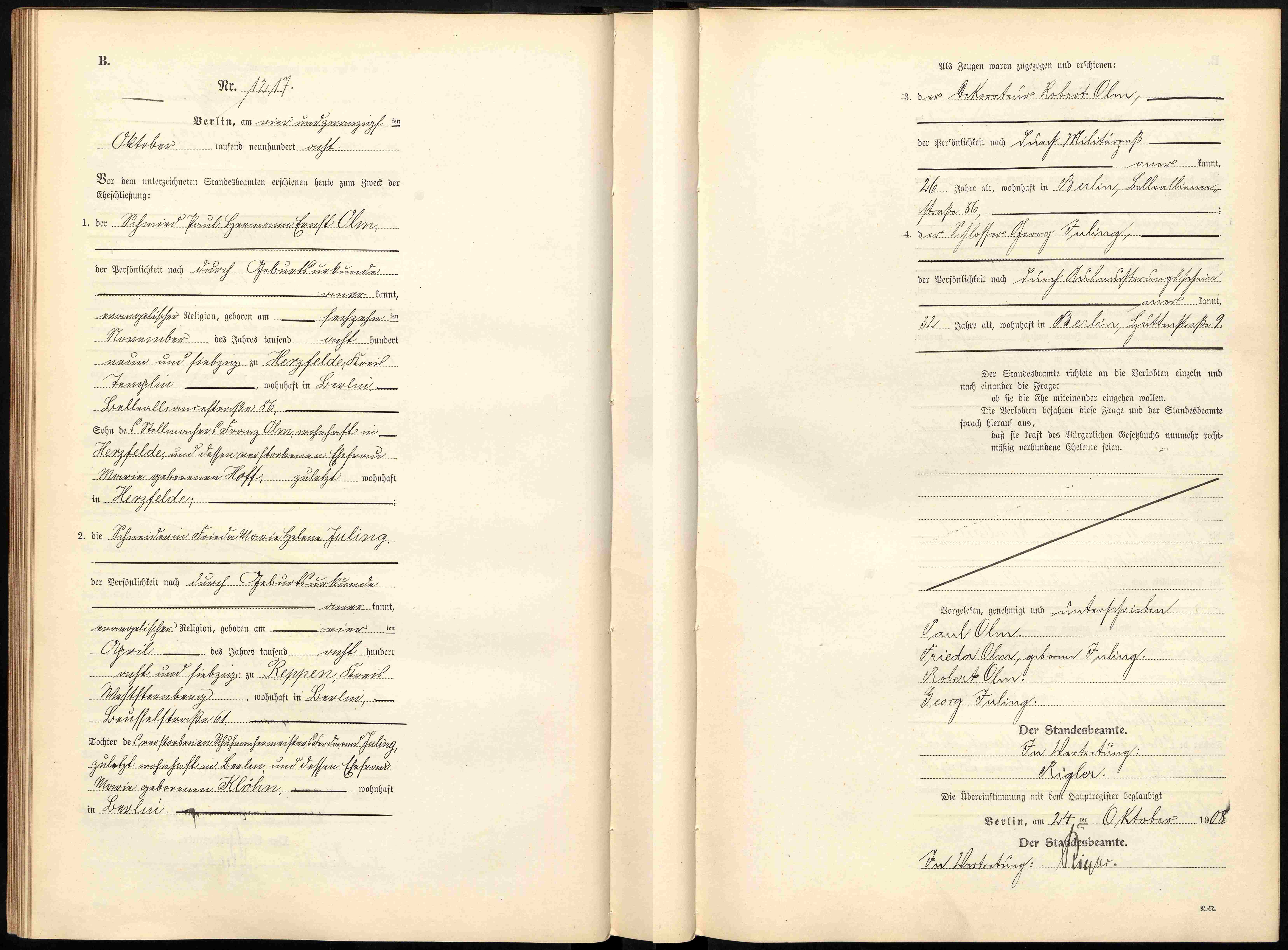 Religion: ev Wohnort: 1908, Beuffelstraße 61, Berlin [1] |