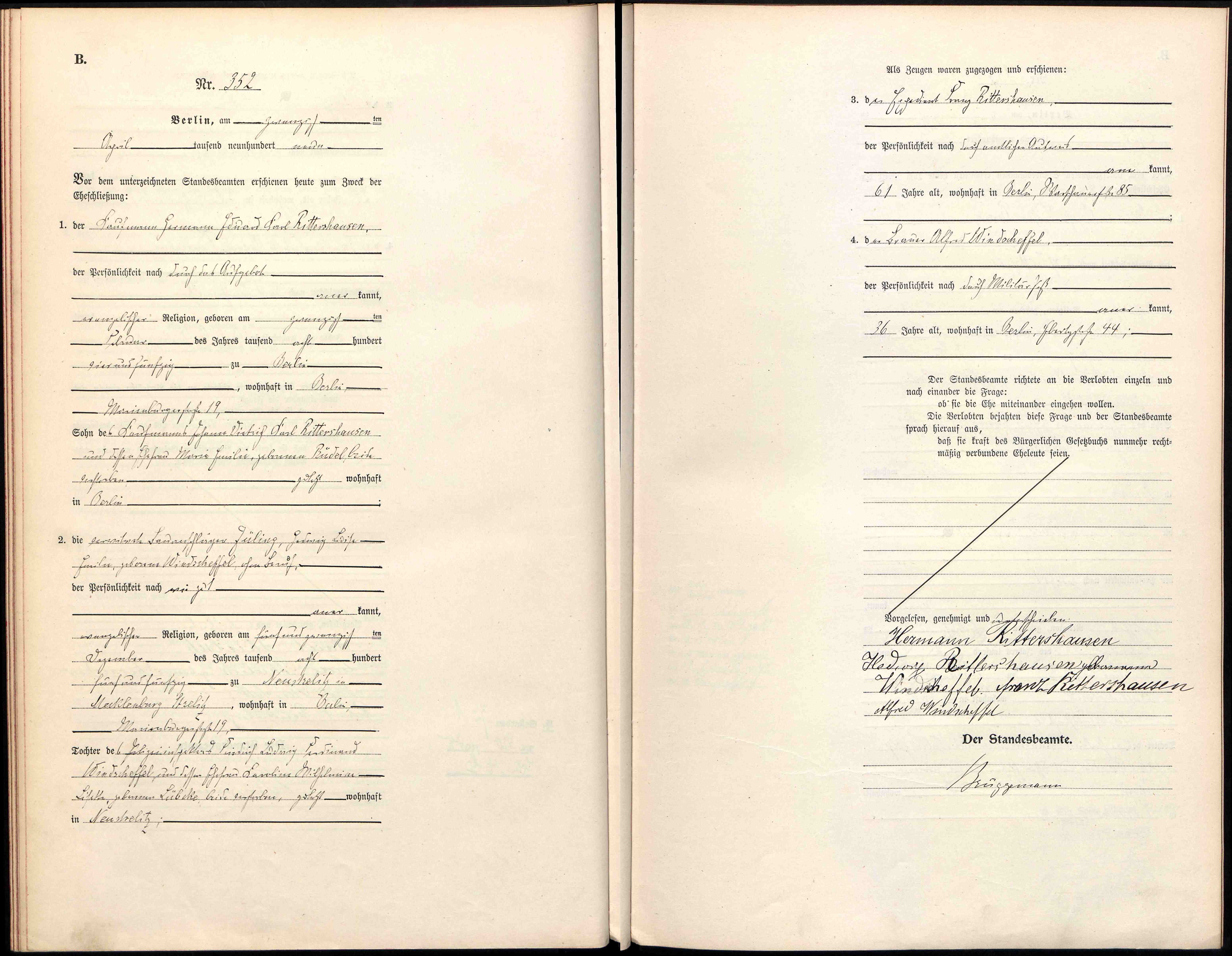 Religion: ev Wohnort: 1909, Mariannenstraße 19, Berlin [1] Beruf: 1909: Kaufmann, Berlin [1] |