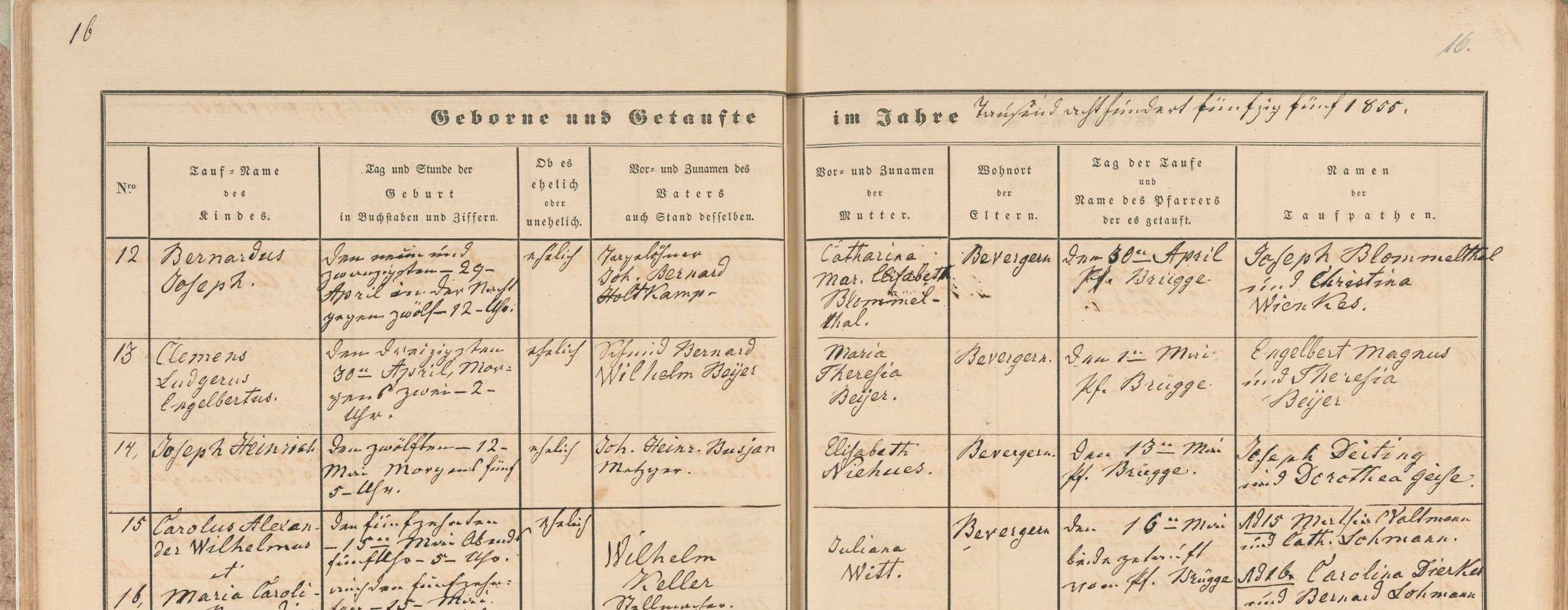 Religion: rk Taufpaten: Joseph Deiting und Dorothea Geiße Bemerkungen: 13.05.1855: getauft durch Pfr. Brügge, Bevergern [1] |