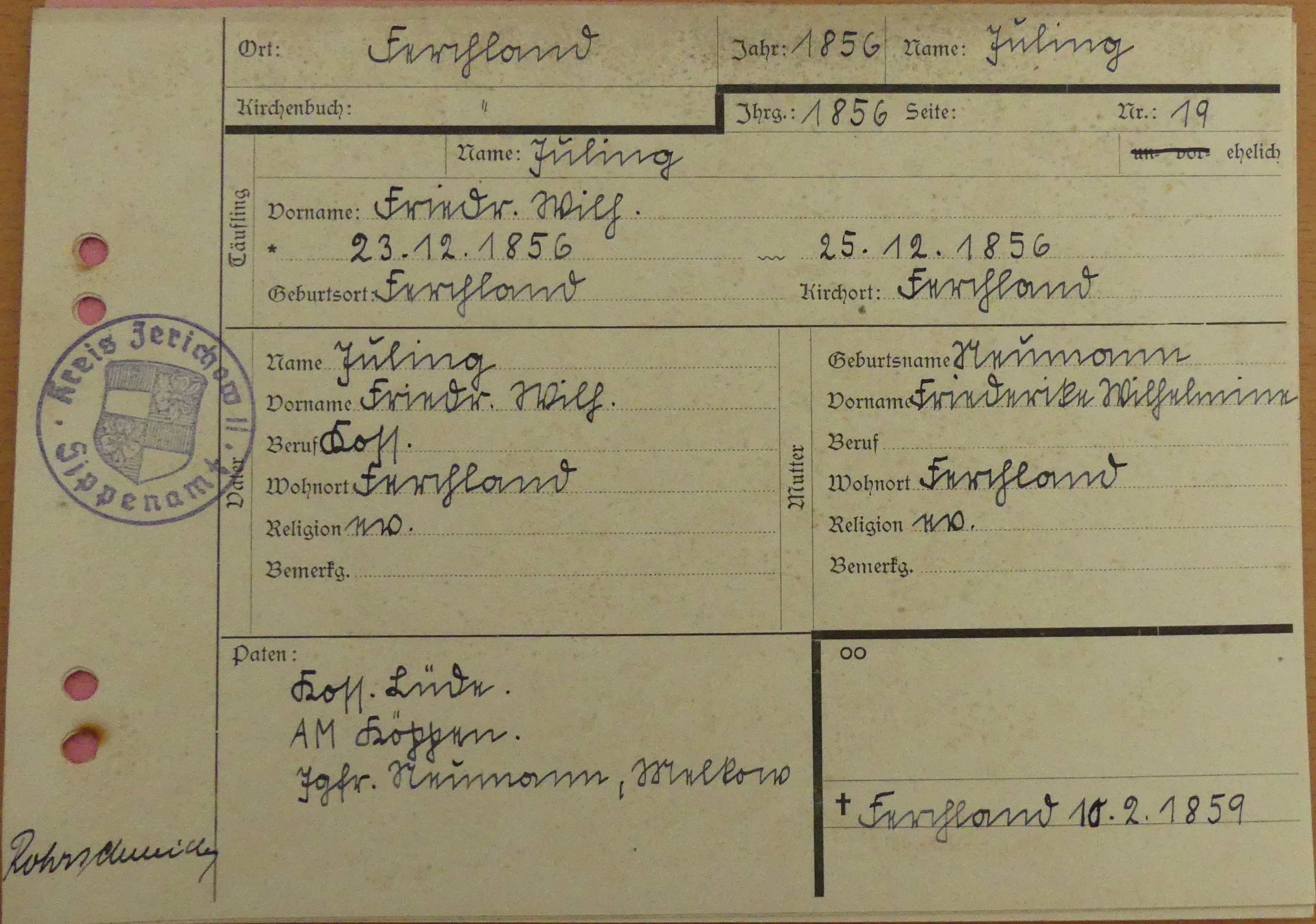 Religion: ev Residence: 1856, Ferchland [1] |