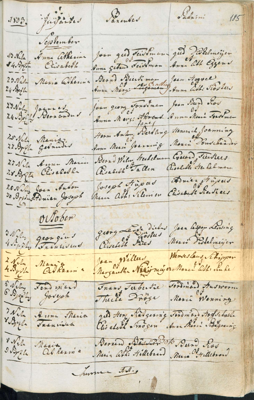 Religion: rk Taufpaten: Wenseslaus Schipper Maria Distelmeyer |