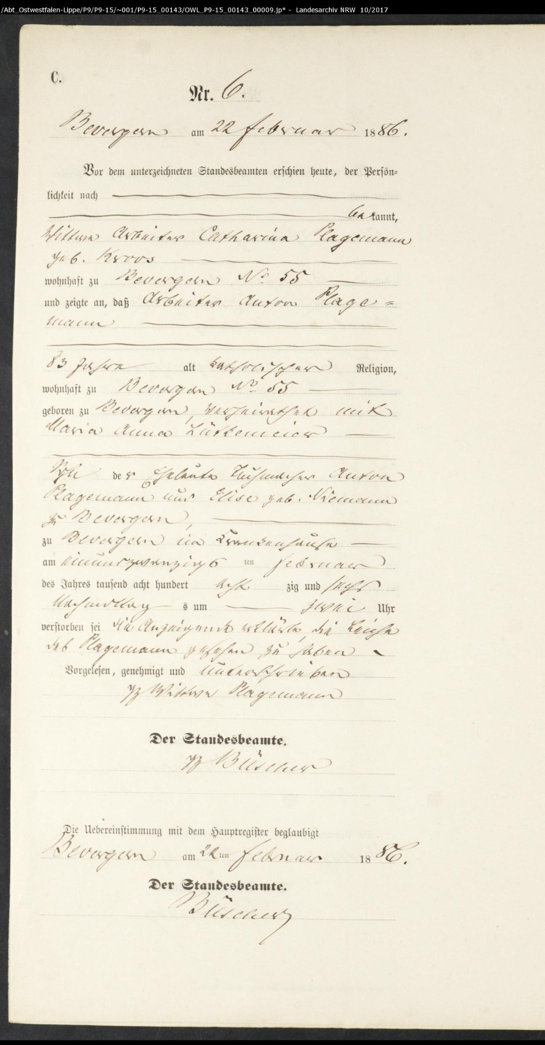 Religion: r.k. Notes: Residence: 1886, Nr. 55, Bevergern [2] Profession: Tuchmacher / Postfußbote [3] |