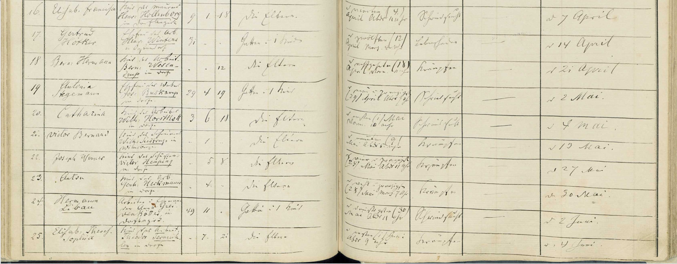 Religion: rk Taufpaten: Gertrud Tümmers Franz Struckmann Bemerkungen: Zwilling [1] "Borghorst am 12. April 1877 Vor dem unterzeichneten Standesbeamten erschien heute, der Persön= lichkeit nach bekannt, die Oberin des Krankenhauses Schwester Coelina, wohnhaft zu Borghorst N°= 220, und zeigte an, daß Gertrud Hötker, Ehefrau des Arbeiters Johann Heinrich Winter, 31 Jahr, 11 Tage alt, katholischer Religion wohnhaft zu Borghorst, Ostendorf N°=15 bei ihrem Ehemann, geboren zu Leer, Tochter des Einwohners Bernard Hötker zu Leer und dessen daselbst verstorbenen Ehefrau Christina Tümmers zu Borghorst im Krankenhause am zwölften April des Jahres tausend acht hundert siebenzig und sieben Vormittags um vier einhalb Uhr verstorben sei. Vorgelesen, genehmigt und unterschrieben Schwester Coelina" [3] Wohnort: 1877, Ostendorf Nr. 15a, Borghorst [4] |
