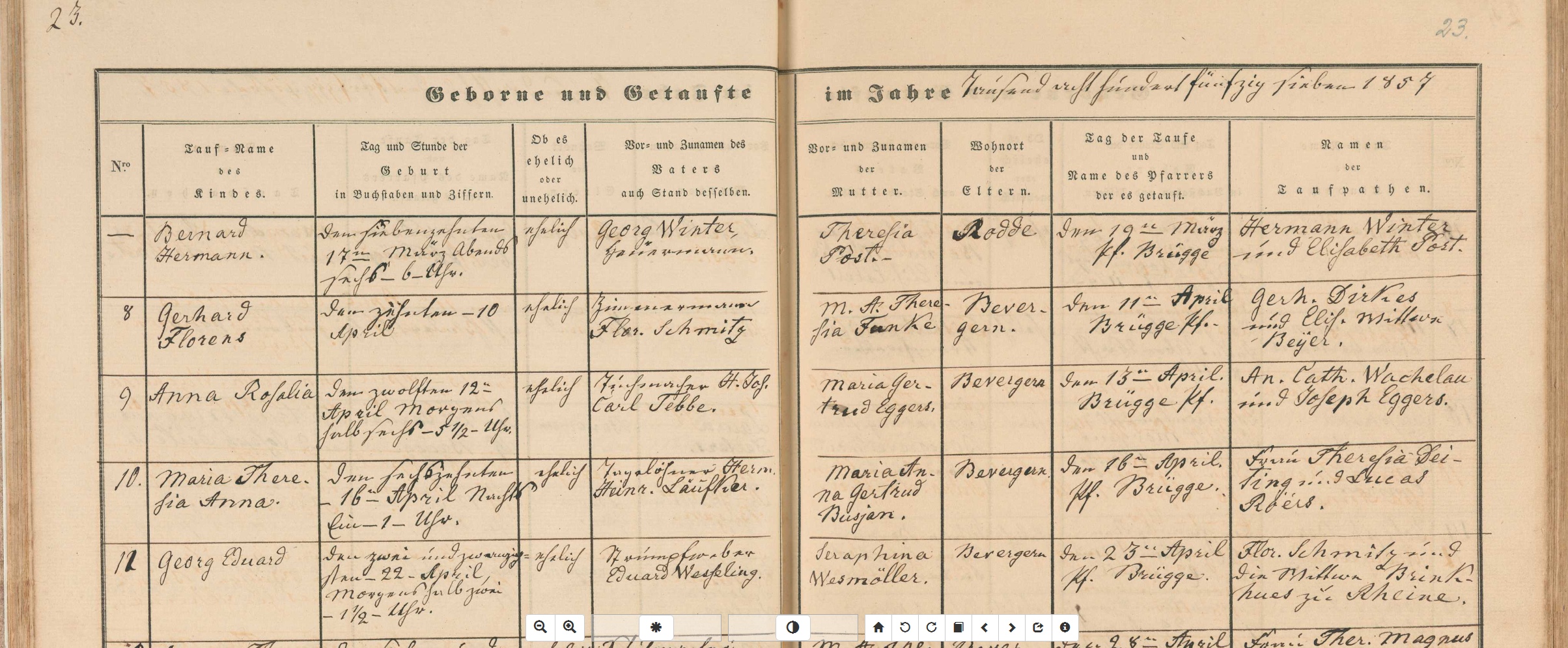 Kirchenbuch Bevergern, St. Mariä Heimsuchung Taufen 1857, Nr.10 |
