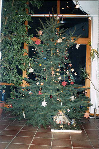 Hier haben wir den Weihnachtsbaum fotografiert, als es draußen schon dunkel war. Er war wieder etwas größer mit vielen Sternen. vorheriger zurück nächster