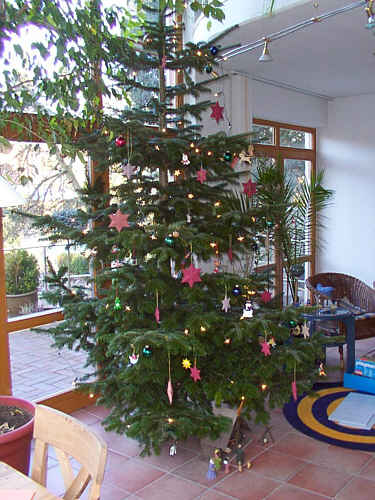 Dieser Weihnachtsbaum hatte wieder viele schöne große rote Sterne. Man kann zwar draußen keinen Schnee mehr sehen, aber über Weihnachten hat es ordentlich geschneit. vorheriger zurück nächster