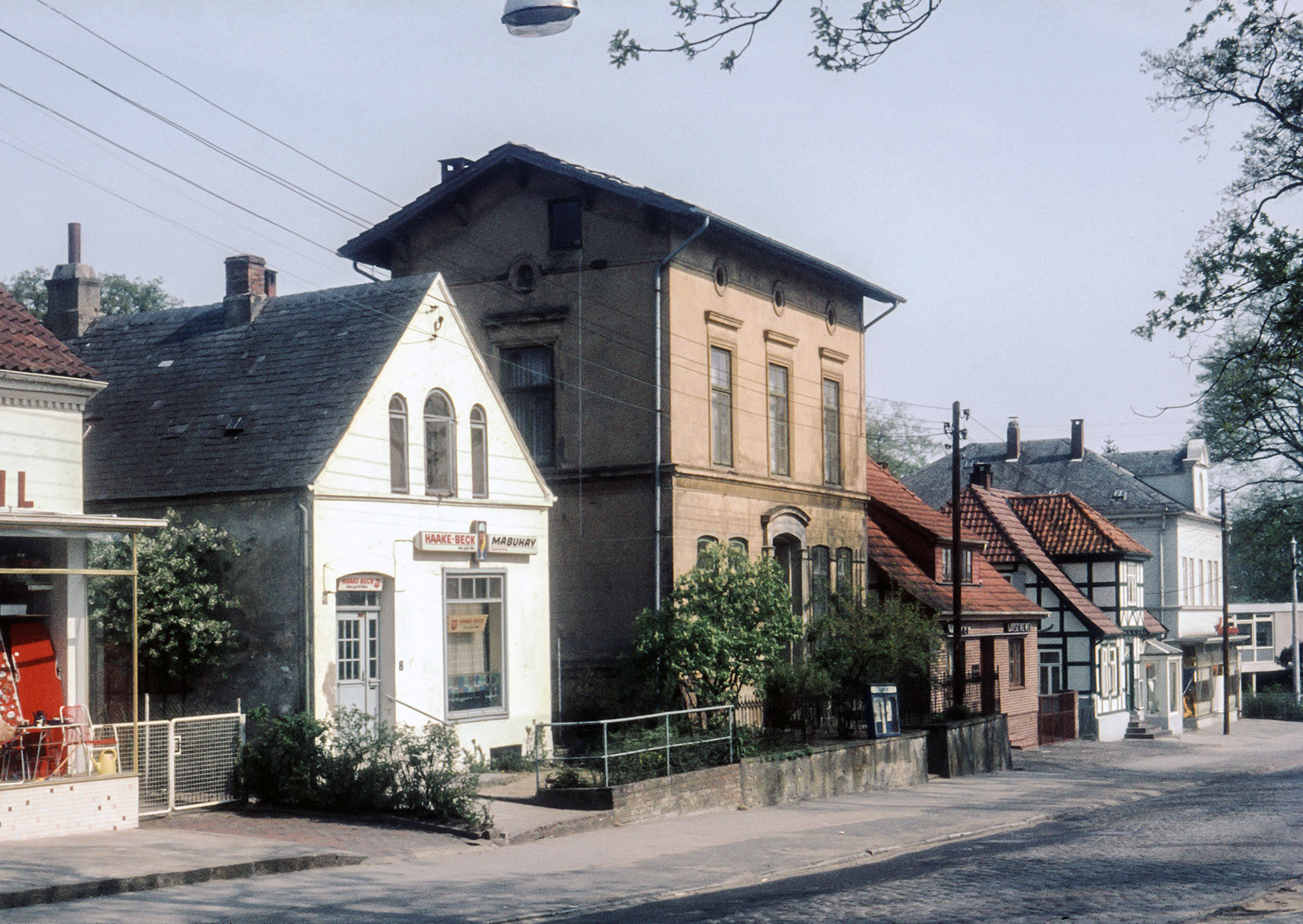 Von rechts nach links: Stadtbibliothek, Reformhaus Ratjen, Wohnhaus Friedrich Kühlken, Wäscherei Welker, Wohnhaus/Praxis Dr. Eytemann und Dr. Pape, ehemalige Marktklause, Haushaltswaren Brühl Georg Welker erwarb das Fachwerkhaus 1914 und betrieb dort bis 1976 eine Wäscherei, deren Geschäftssitz danach nach Burgdamm verlegt wurde. Das hohe Haus nebenan ließ Dr. Eytemann 1854 bauen. Nach seinem Tod übernahm Sanitätsrat Dr. Eduard Pape Wohnhaus und Praxis. Links daneben befand sich die Gaststätte Marktklause. Das Haus hat eine bewegte Vergangenheit. Erbaut wurde es 1845 vom Sattler Petersen. Im Verlauf der Jahre wurde das Haus von einem Mützenmacher, einem Hut- und Tapetengeschäft sowie einem Fotogeschäft genutzt. Zuletzt wohnte dort der Schlosser Jan Dziurla, dessen Frau die „Marktklause“ betrieb. Anstelle dieser drei Häuser entstand das heutige mit Rundbögen ausgestattete Gebäude.
