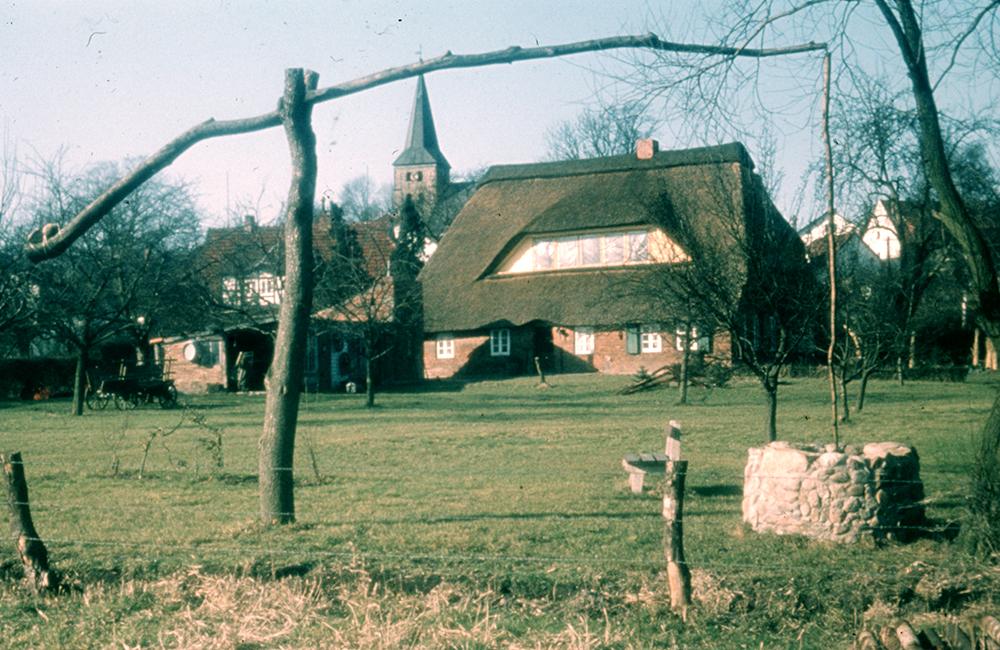November 2024: Haus Deichweg 10; Deichweg 10 (Lesum); Foto: 1972 Das Vorgängerhaus wurde um 1700 von Cordt Lankenau errichtet und bewohnt. Ein Nachfolgebacksteinbau erfolgte 1891 mit Stroheindeckung. Wechselnde Besitzer bewohnten das Haus, zuletzt die Familie Linde. 2010 wurde das durch Sturmfluten marode Gebäude abgerissen. Das neue Gebäude entstand dann mit Pfannendach. Der alte Mauerstein mit dem darin eingelassenen Errichtungsjahr 1891, ist von dem jetzigen Besitzer in den Neubau integriert worden. Der Ziehbrunnen im Vordergrund wurde um 2010 abgebaut. (Archiv HVL FLesum01105)