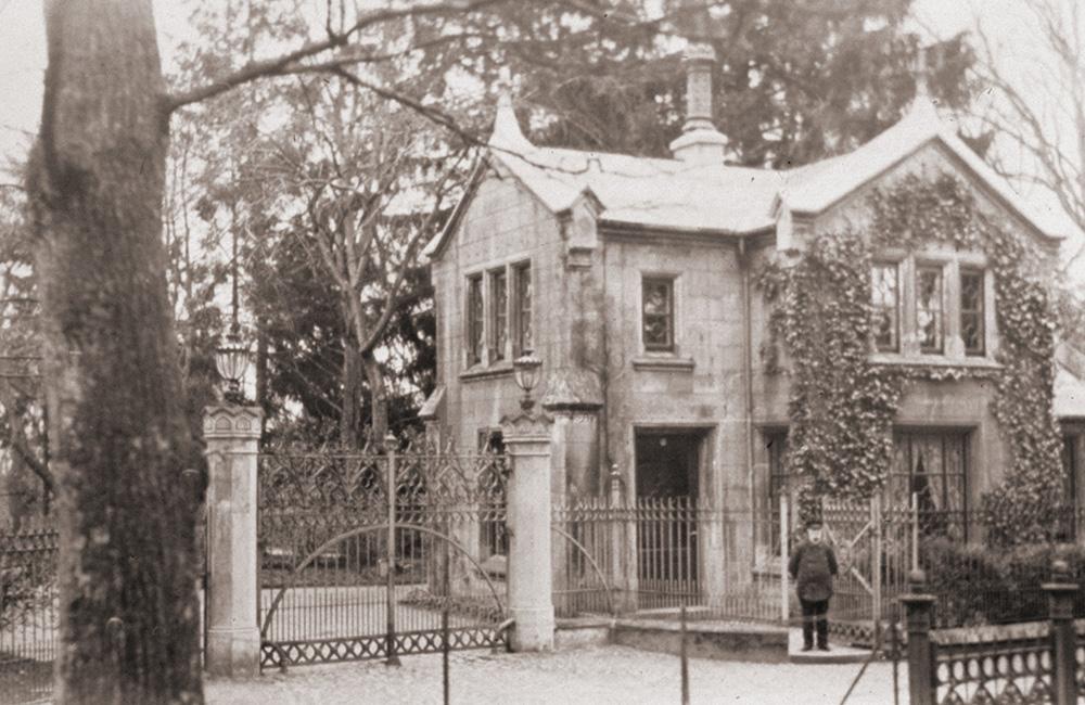 März 2025: Torhaus von Schloss Mühlenthal; Auf dem Hohen Ufer 32 (St. Magnus); Datum unbekannt Das westliche Torhaus vom Schloss Mühlenthal wurde 1868/71 von Gustav Runge als Gärtner- und Wohnhaus gebaut. Heute wohnt dort der Dom-Uhrmachermeister Henning Paulsen und hat hier auch eine kleine Werkstatt. Das Torhaus steht seit 1973 unter Denkmalschutz. (Archiv HVL F04144)