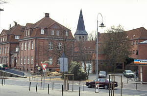 Um uns ein Bild über diesen historischen Boden zu verschaffen, greifen wir in das Rad der Geschichte und versetzen uns in das Jahr 1851. Zu jener Zeit wurde durch eine Verfügung der Königlichen Regierung in Hannover das Amt- und Gerichtswesen neu geordnet. Sie machte auch dem „Geschlossenen Patrimonialgerichte Lesum-Schönebeck“, dessen Patronatsherr der Freiherr VON DER BORCH zu Schönebeck war, ein Ende. So bekam das alte Lesumer Kirchspiel ein eigenes Amtsgericht. Es wurde 1854 für 9622 Thaler auf dem Geestrücken an der 1830/32 ausgebauten Chaussee (Hindenburgstraße) nahe der Kirche auf dem Grundstück von Wischhusen, dessen Hofstelle sich auf der heutigen Stelle des Gemeindehauses befand (vor dem Gasthaus „Stadt Hannover“ von Diedrich MEYER und später VON DER FELSSEN, 1958 abgerissen), erbaut und in Dienst gestellt.